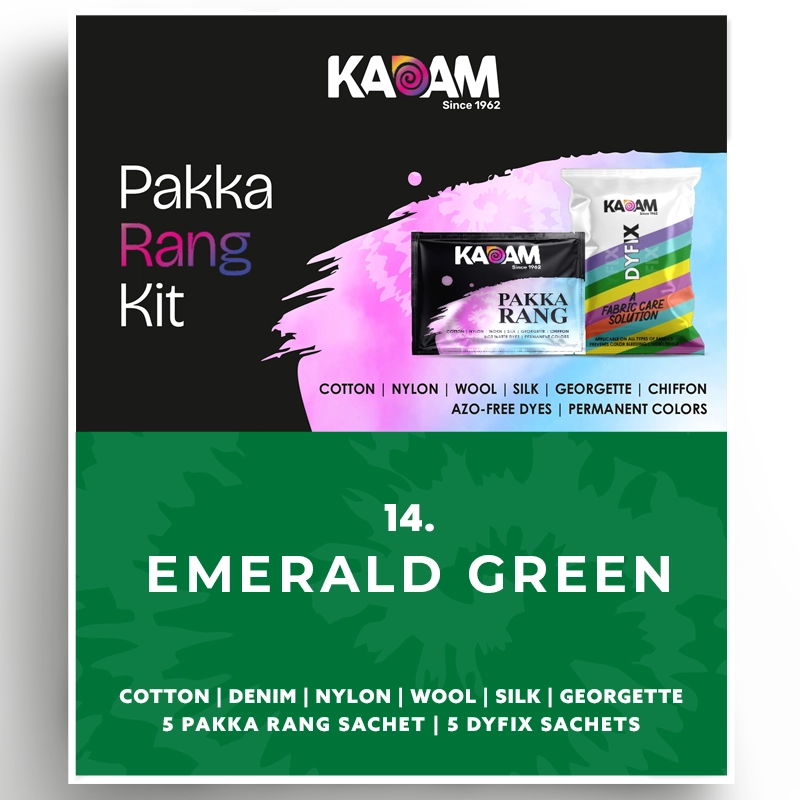 Kadam Pakka Rang Kit in Emerald Green, rich gemstone-inspired dye for all fabrics; vibrant, safe and long-lasting, 25g.