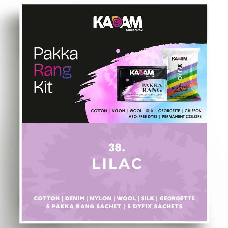 Kadam Pakka Rang Kit Lilac fabric dye for cotton, silk, wool, nylon, georgette, chiffon – azo-free, permanent color, 25g sachet.