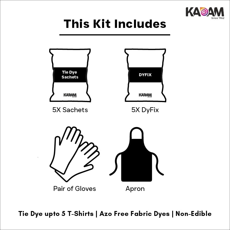 1 Kadam Tie Dye kit can dye up to 5 T-shirts or equivalent fabric, making it ideal for group activities or larger projects.